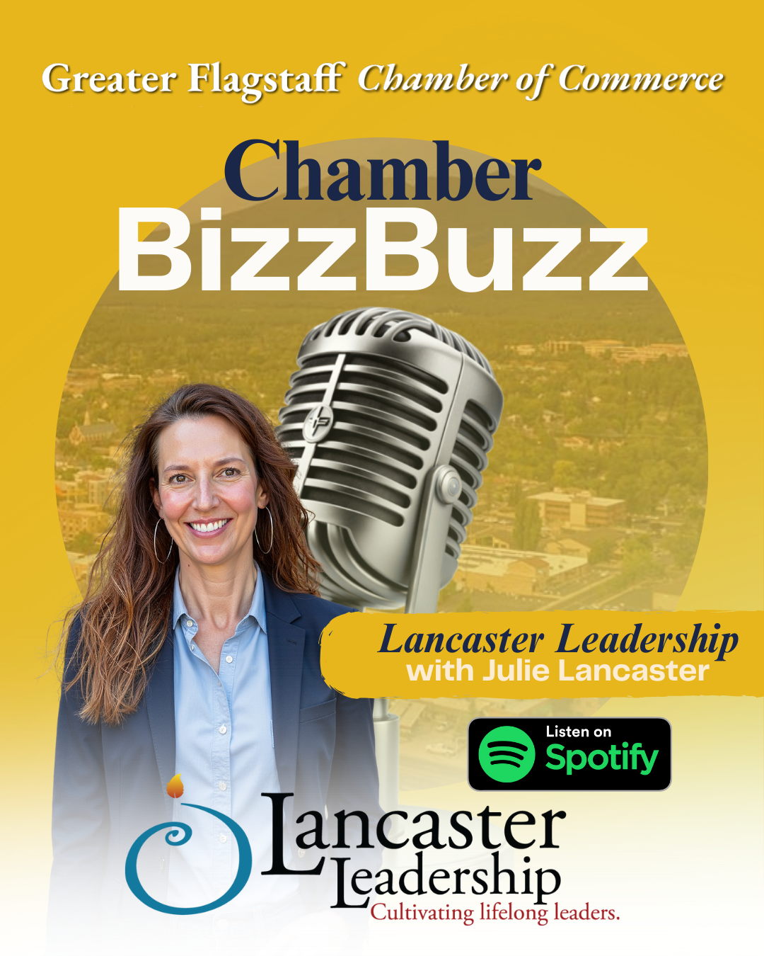 JULIE LANCASTER IS GRATEFUL TO JOIN CHAMBER BIZZ BUZZ ON SPOTIFY WITH GREATER FLAGSTAFF CHAMBER PRESIDENT & CEO JULIE PASTRICK, SHARING THE WORK OF LANCASTER LEADERSHIP AND EXPLORING HOW INTENTIONAL LEADERSHIP DEVELOPMENT CREATES REAL, LASTING CHANGE.